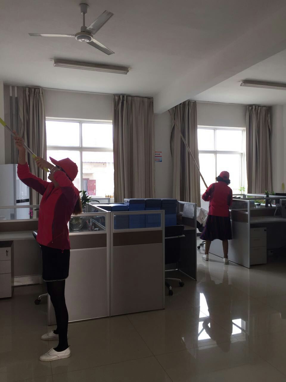 會后,各部門積極響應(yīng)公司號召,全員集中互助打掃各部門負責(zé)的區(qū)域環(huán)境衛(wèi)生,24日公司大院呈現(xiàn)同志們辛勤勞動的熱火朝天景象,中心站和經(jīng)營部、工程部兵分幾路,割草機轟鳴,辦公室、財務(wù)部、發(fā)展部同志們上高沿低抹屋頂蜘蛛網(wǎng)、灰塵,擦玻璃、桌凳、沙發(fā),吊扇、燈管等,巾幗不讓須眉,女同志鏟草、耙地,用柔弱的小手換來干凈衛(wèi)生的小花園。公司請人粉刷了門房和大門,安裝路燈,亮化中心站院內(nèi)所有道路。