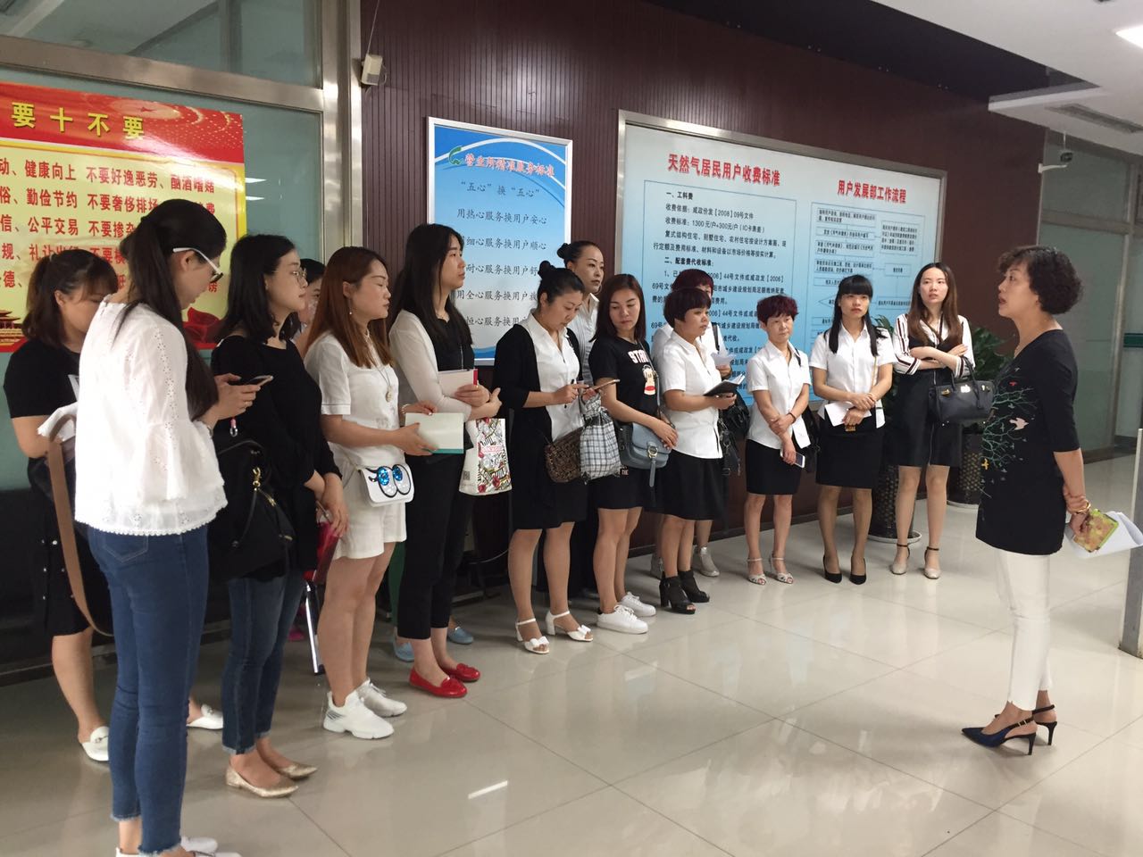 按照第三階段安排,我們及時與天然氣公司結(jié)隊(duì)服務(wù)窗口聯(lián)系,所有用戶管理員于5月23日上午到天然氣公司營業(yè)大廳現(xiàn)場學(xué)習(xí)交流,向天然氣服務(wù)窗口工作人員現(xiàn)場學(xué)習(xí)工作規(guī)范、流程以及用戶溝通的技巧。同時,我們還學(xué)習(xí)了天然氣公司用戶接待的“首問責(zé)任制”、“用戶信息化標(biāo)準(zhǔn)”、“層層培訓(xùn)制度”以及“五心換五心的服務(wù)標(biāo)準(zhǔn)”等制度。