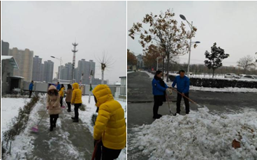 雖然出行這么難,但我們熱力公司的全體職工熱愛企業(yè)愛崗敬業(yè)精神還是令人佩服的,這不,全公司今天無一人請假,都在公司大院集合掃雪。超大的院子被白雪覆蓋嚴(yán)實(shí)了,同志們手拿鐵锨、掃帚、鐵耙,鏟的鏟、推的推、掃的掃,刨的刨,通力合作,各部門相互協(xié)助,用了半天時(shí)間就使公司院子條條道路暢通無阻,積雪全部倒入苗木下做了水肥。這次應(yīng)急隊(duì)隊(duì)員們表現(xiàn)突出,肯實(shí)干出力,女同志更是巾幗不讓須眉,而我們的老大哥楊經(jīng)理更是讓人敬佩,他挽起袖子走在鏟雪隊(duì)伍前頭,身先士卒,埋頭苦干,在他帶領(lǐng)下,同志們完成了各條小道的清掃工作,美麗的熱力大院頓時(shí)進(jìn)出便捷,安全順暢了。