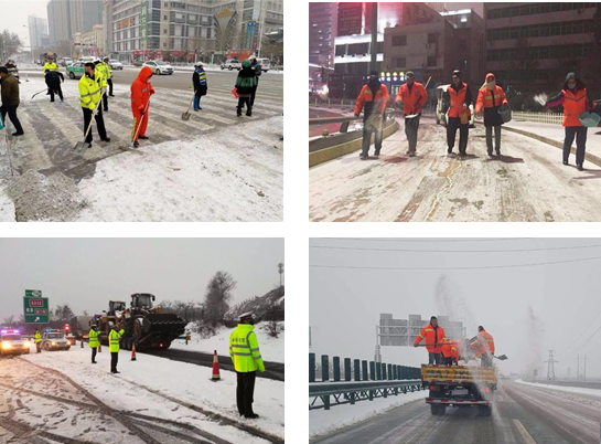 當(dāng)大家都顧著觀賞雪景的時候,有一群人為了大家的安全出行默默地辛苦工作著。全市各街辦及相關(guān)部門人員走在街上撒融雪劑,交警、環(huán)衛(wèi)工、路政等也冒雪清理路面積雪。